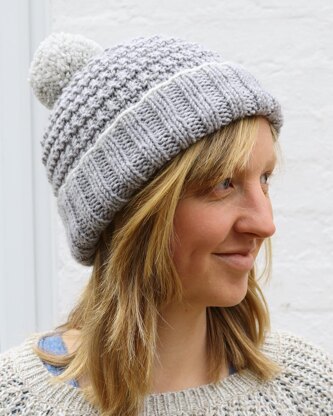 The main body of the hat is worked in a granite style stitch - a super easy stitch to work. It gives the hat a lovely texture as well as adding loft to make it warm and cosy.
