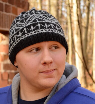 Look sharp and stay warm during those cold autumn and winter days and nights. The particular stitch patterns were chosen because I was designing the hat for a guy and I like the sharp clean straight edges. Lovin' the look of black paired with shades of grey; Cascade 220 Superwash Wool in colors Black and Space Needle were used for Alex's hat.