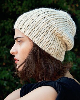 A quick and fun project to make, Alfie is a great way to practice using bigger needles and a scrumptious, chunky yarn. Suitable for men or women, Alfie is knitted in the round and designed to be slouchy rather than beanie. The hat is knitted on circular needles using the magic loop technique but can easily be made using double pointed needles as well. Knitted on 7 mm circular needles (alternatively double pointed needles). Finished measurements: Circumference [relaxed rib] - 34 cm; Depth - 24 cm. Tension: Not crucial. Photographed in the colour Alpaca Light. Knitted in Purl Alpaca Designs 100% pure alpaca Chunky yarn. A substitute yarn is shown below.