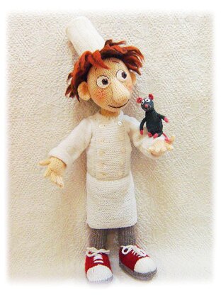 The doll Alfredo Linguini from Ratatouille cartoon pattern includes 55 pages and 72 photoes of toy creation in PDF format
