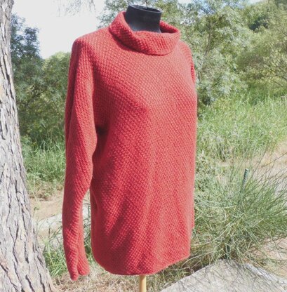 ALIMENA - a spacious jumper in cashmere in a relaxed style where the textured pattern together with the wideness make the elegant presentation. Drop shoulder sleeves to either work from top to bottom or to work seperately for then to join into armhole. The body is worked in rounds until armholes, then in flat - the sleeves to work flat. Written pattern with charts. The model is also suitable to work in wool.