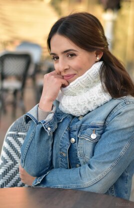 This scarf is an interesting project with intricate cable texture. Knits up very quickly due to the chunky yarn and looks great made of solid color yarns with crisp stitch definition, shown in Paintbox Simply Chunky yarn.