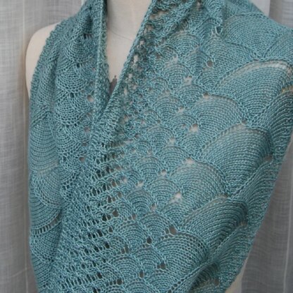 Song of the Sea has two size options included in the pattern, plus new instructions for custom sizing and changing the yarn. The long cowl typically uses one 400m/437yd skein of 4ply/fingering. The snug cowl can be made from a smaller 365m/400yd skein.