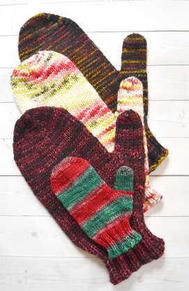 These mittens are highly customizable. It is helpful to try on the mittens as you go or have a hand tracing or hand measurements of the person you are knitting for. Finger length, thumb length, and total fingertip-to-wrist length are helpful measurements but not necessary.