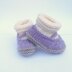 The pattern is very simple, requiring a basic knowledge of knitting and 3 shades of DK yarn (25g each). A pair can be whipped up easily in an evening for a last minute baby shower gift.
