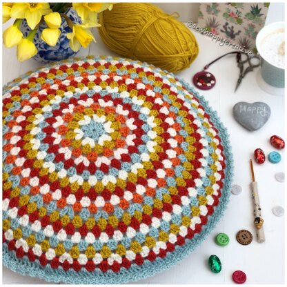 All Round to Granny’s Cushion pattern: A step by step guide to making your own retro granny round cushion in any dk yarn we have used Stylecraft special DK and the colours are listed for the shades we have used but any dk yarn will do. A 7 Page pattern with a photo tutorial in a handy PDF format! A place I have visited a lot with my children over the years is the boat museum near where we live. It is full of colourful barges which have small cabins that are decorated with brightly painted pots and pans and colourful crochet cushions. The inspiration for my granny round cushion comes from here, I hope you will enjoy making it as much as I loved creating it. Happy Crocheting! Skill level is beginner to intermediate.
