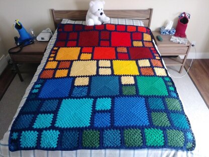 The idea behind the All Squared Away patterns is to take the traditional granny square pattern and make it sing! These patterns are designed to use squares of different sizes, which makes them ideal for using up scraps; while the joining method used cuts down on the number of ends you need to weave in.