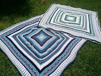 I created this blanket design to be suitable for young boys as a snuggle blanket on the couch or during nap time as it measures 1.3 m x 1.3 m. It can easily also be the perfect ‘no holes’ baby blanket if done with sport weight/baby yarn and a 3 mm - 3.5 mm crochet hook. Of course it can also be suitable for any young lady by simply changing the color way.