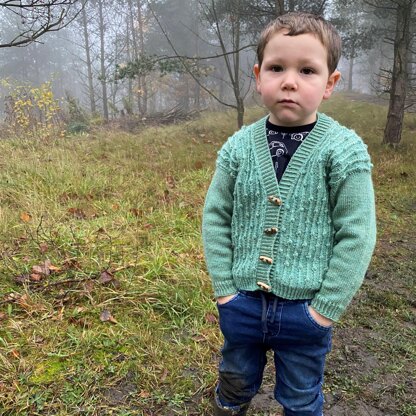 The Allium cardigan is an interesting pattern with twisted stitches and staggered bobble to keep you interested while you knit. It is worked in one piece from the bottom up, separating for the armholes and joined with Kitchener stitch at the shoulders. The sleeves are picked up and knitted from the top down in stocking stitch. This cardigan is a loose fit to be worn over other clothing and keep your little one warm and snug.