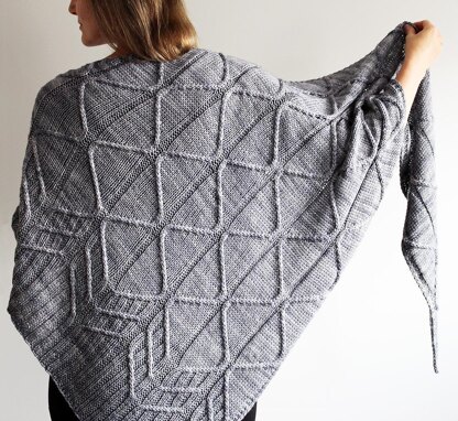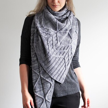 A beautiful graphic cable-rib motif creates this eye-catching, cosy triangular shawl.