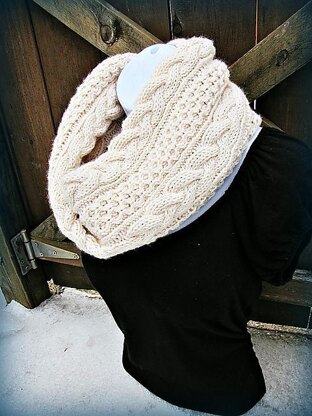 This scarf features an optional faux mobius twist that is put in after the entire scarf is knitted. You get the option of a lovely twist without having to work a twisted project.
