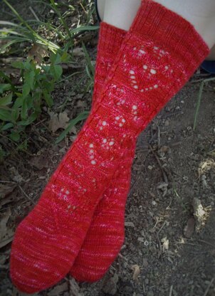 Knit cuff down with a heel flap they include three charts and enough interest to keep the most fickle of knitters (me!) interested from cuff to toe.