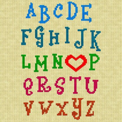 Add a playful and heartfelt touch to your knitting projects with this Alphabet with Heart Knitting Chart! Featuring decorative letters and a heart symbol, this chart is perfect for personalized knitting projects, baby blankets, sweaters, scarves, tote bags, and home décor. Whether you're making a customized name gift, monogrammed sweater, or nursery decoration, this versatile chart is designed for both hand-knitting and machine knitting, working seamlessly with Intarsia, Fair Isle, and Duplicate Stitch techniques.