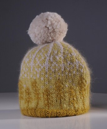 These beautiful fair isle hats are made using 3 skeins of Plump DK. They are fun to make and cleverly decrease at the top to produce a snowflake on the crown. You can have lots of fun with the colours. There is plenty of yarn left to make a pompom (although mine is topped with a pompom made from Plump Superchunky)