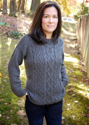 Knit seamlessly, the body of this garment is worked in rounds from bottom to underarms, then divided for front and back which are then worked flat to shoulders. Shoulders are joined with 3-Needle Bind Off, then sleeves are picked up from the body and worked in rounds down to cuffs. Collar is picked up and worked last. Multiple video tutorials are linked in the pattern.
