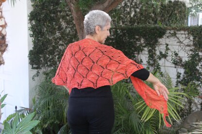 Alsea River is a timeless curved triangle shawl with leaf lace down the center and edges. The pattern is written and charted out.