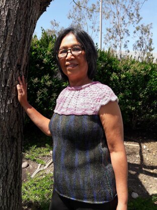 Alstrom is a summer top knitted with Knit Picks Hawthorne Sport Multi Yarn. The yoke is made from Fremont and the body is made from Montavilla. The shirt is slightly loose fitting and knitted sideways to create the vertical stripes effect, similar to the stems of a bouquet of alstroemeria flowers. Short rows build the body shaping below the waist. The top portion is knitted in the round. Stitches for this one-piece yoke design are patterned using a modified wheat stitch with alternating purl ribs. The yoke sizing is accomplished by adjusting the count of purl stitches between the individual wheat stitches until only the wheat stitches remain. The pattern contains row by row instructions. A perfect quick-knit, easy for the intermediate knitter. Material needed: Knit Picks Hawthorn Sport, 2 skeins Montavilla/2 skeins Fremont (2/2, 3/2, 3/2, 3/2, 4/3, 4/3). Jeny's surprisingly stretchy cast on and bind off are used and links to her videos are provided.