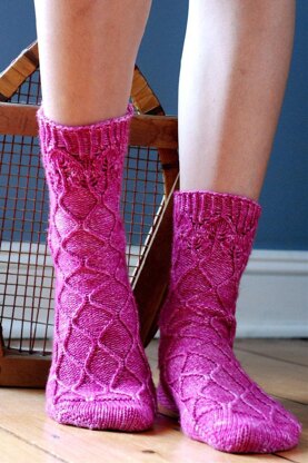 Althea is worked from the toe up on two circular needles with a short row heel.