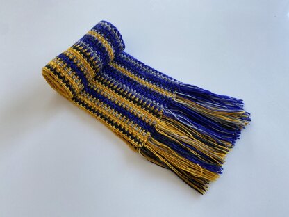 Last year my dad asked me to make him a scarf. He picked out a stitch pattern he liked and we picked out yarn. A few months later, before I started the scarf, I was showing him the colors he picked, which included a dark blue. He asked me why there wasn't any maize to go with it. I went in search of new yarn so that his scarf would be maize and blue. My dad is always a Michigan Wolverine. Whatever your allegiance, I hope this scarf will help you show your true colors. (And from my dad, "Go Blue!")