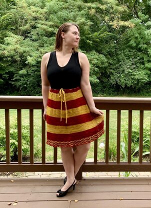 It always seems so cruel that come Monday, we have to leave our fandoms and magical inclinations behind as we don our acceptable adulting robes of the real world. But do we? Nothing makes my heart sing for glee quite as much as a cleverly disguised yarn colorway (in particular when they have simply magical names as well!) that reminds me of my favorite fandoms and guilty pleasures! What could be more magical and mysterious than yarn crafted to invoke the world of Harry Potter? (Brew City Yarns has even taken it a step further and carefully crafted sets that are the perfect House colors, so go ahead, represent your house proudly!). If you need just a little pick me up to get your Monday started, or perhaps you need something to make your Friday more fun, than you can definitely count on Hedwig to bring the magic in this fun skirt!