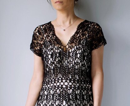 Designed for special occasions, Alyssa embodies the quintessential elements of an elegant romantic dress. The lace of the skirt sweeps down to the hem and unfurls as beautiful edging while the scalloped front slit adds an extra feminine touch. The unique construction requires no seam sewing and enables you to easily customize the dimensions. Adjust the skirt length and turn Alyssa into a peplum top, mini dress or floor-length gown, with or without the front slit, as you like.