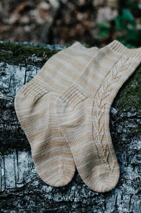 1 (2, 3, 4, 5) (Finished foot circumference 17.5 (18.75, 20, 21.25, 22.5) cm / 7 (7.5, 8, 8.5, 9)”, recommended to be worn with 0-2.5 cm / 0-1” of negative ease)