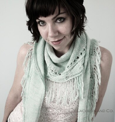 This pattern is worked from side to side, with increases and decreases along the bottom edge of the shawlette body to form a shallow curved shape. A leaf pattern with dropped stitches creates a beautiful fringed edge. It is easy to customize the size of this shawlette by adding or subtracting repeats in any section. Just be sure to use the same number of repeats for the Increase and Decrease Sections.