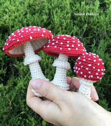 The pattern is for 3 mushrooms of different sizes: the largest one - 10cm, the middle one - 8.5 cm and the smallest - 7 cm.