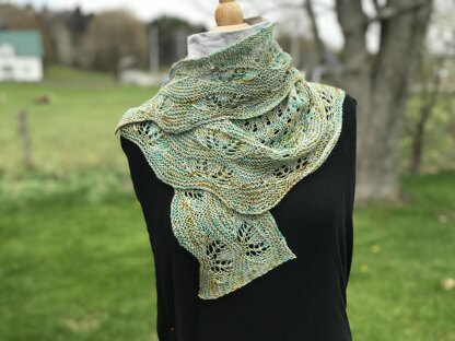 This shawl is inspired by the sand dunes, waves, and amber of the Curonian Spit on the coast of Lithuania.
