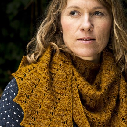 A simple lace repeat provides a glorious texture for this shawl pattern. Worked in the lovely Kettle Yarn Co. Northiam DK yarn, this yarn gives the lace wonderful definition and creates a gorgeously soft shawl that is both striking and luxurious.