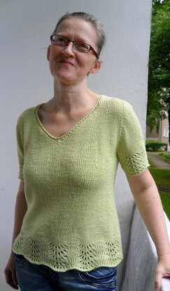 gauge: 21 stitches x 25 rows = 10 x 10 cm // Size: bust 34“ - loose fit (picture), bust 39“ - tight fit // I just uploaded some schemes for Ambiente - one scheme for tight fit and one for loose fit - the yarn is a bit stretchy, so it will fit anybody "between" these numbers :-) // The garment itself is a bit smaller than the numbers in "tight fit" - but as I said it is a bit stretchy .....