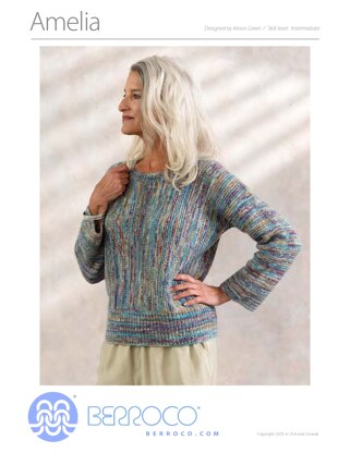 A sophisticated pullover combining timeless elegance with charming details and a luxurious boost from the additional of Aerial, Amelia is as chic as it is comfortable. Worked sideways from the center front and back out to the sleeve cuffs, Amelia offers an engaging construction as well as a finished pullover that will elevate any wardrobe.