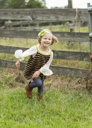 Inside-out, upside-down, backwards, these are the ways my darlings like to get dressed! This simple design features a never-backwards reversible front and back that is equally adorable no matter which way it is put on. • The apron-inspired pinafore is knit from the bottom up all in one piece, with no seaming. Garter edging is picked up and knit along with the straps. • Pattern is suitable for adventurous beginners. Shown in size 4.