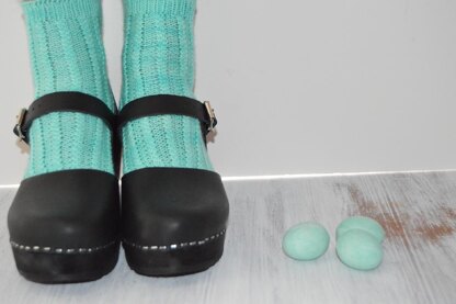 I love this socks! With false cables,you'll love this pattern as much as I do. Toe up construction and circular needles, perfect to take with you into your bag. I used Larpeiradas Sock, hand dyed by me 1 skein at a time, my first color, Mint, are gorgeous!