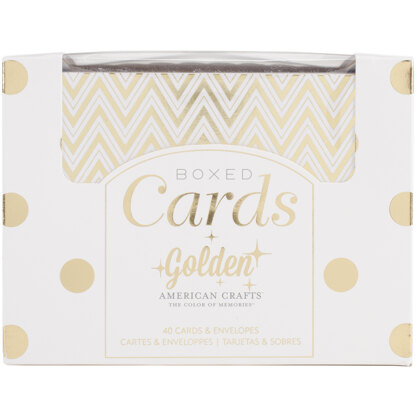 American Crafts-A2 Cards & Envelopes. This boxed set of cards is perfect for any card maker or for anyone just looking to send notes to friends and loved ones. Use them as they are or embellish and customize them to your recipient and occasion. Each card features a pretty patterned design on the outside with a blank white inside. They come with plain white envelopes. The cards measure 4-1/4x5-1/2 inches, the envelopes measure 4-7/16x5-11/16 inches. This package contains forty cards (four each of ten designs) and forty envelopes. Design: Golden-Gold Foil. Imported.