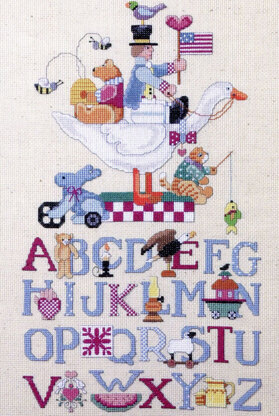 By Linda Gillum. This good old fashioned American Sampler portrays whimsical images of America, such as; Uncle Sam, Teddy bears, a bald eagle and an American flag. It will coordinate beautifully with an Early American decor.