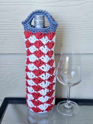Red white blue is one of my favorite color combinations. Here’s a quick and easy crochet project to crochet American Wine Tote. There is plenty of time until Independence Day to make this fun gift for our generous hosts of 4th of July barbecue. They will appreciate the patriotic theme you add to their party with this cool red white blue crochet wine tote.