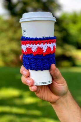 Have a Patriotic summer with our Americana Coffee Beanie Cozy! Our cozies are made with 100% cotton yarn which makes them a great buffer against hot drinks (much better than those cardboard sleeves!) and an even better buffer against cold drinks' sweat!