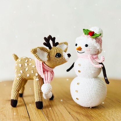 Amigurumi Christmas deer, crochet snowman, crochet deer, amigurumi snowman pattern, Christmas crochet