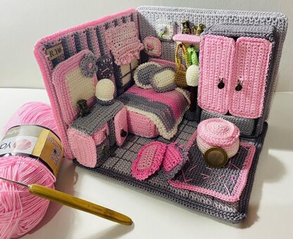 Hello our friends and amigurumi lovers around the world, we designed a fully crocheted girl's bedroom, starting from the wall design, decoration items, all furniture and clothes needed to make it an amazing bedroom with suitable scale 1:20 that is mean that each 1 m in real equal 5 cm in this pattern, such a beautiful crochet bedroom will be an amazing gift for a little girl in different occasions.