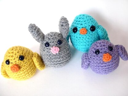 Meet Pippi the Bunny and Pippa the chick! They look great crocheted up in lots of colors- so give it a go! The chicks measure 3" tall when completed, and the bunny (with his tall ears) measures 4" tall.