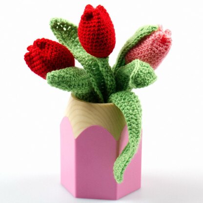 Colorful tulips will embellish any part of your house. These crochet flowers make your home much cosier and heartwarming. Also, handmade bouquet of tulips is a wonderful gift, that will help you to make a pleasant impression on person.