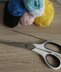 100% Baumwolle, je 1 Knäul in rosa, schwarz, weiß, gelb, dunkel blau und 2 Knäule hellblau alle mit einer Lauflänge von 125m~50g z.B. gründl Cotton Quick uni oder GB Wolle Carina