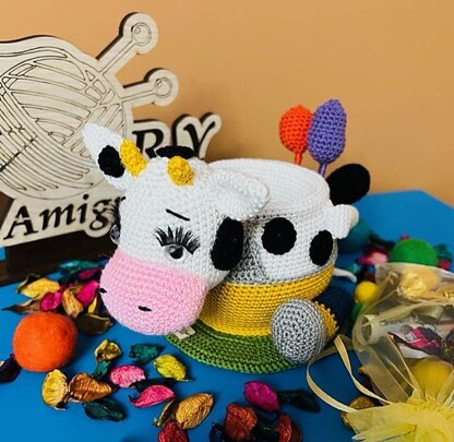 Hello our friends and amigurumi lovers around the world, the celebration of the blessed Eid Al-Adha approaches, one of the most beloved holidays in the Islamic world, Muslims celebrate it every year after performing Hajj rituals at the Holy Kaaba. This beautiful memory for children is related to obtaining Eidia (money), gifts, candies, and going out to parks and gardens. We have designed a cow as a gift for Eid but in a different style and after the end of the Eid, it can be used like a pencil case or a vase so it can be used all year long and represents a happy memory We hope it will be joyful and brings happiness to everyone who uses it. This pattern is written and designed by Reham Youssef the owner of R.Y amigurumi and please note that it is for your personal used only and it is not allowed to sharing and reselling and reproduce in Internet or any way of published, you are able to sell the product only as you want.