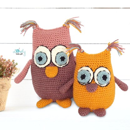 MEASUREMENTS: bigger owl size is about 6.7 inches (17 cm), smaller owl size is about 4.7 inches (12cm), when done with sport weight yarn and size C crochet hook (2.5 - 2.75 mm). The sizes of owls may vary depending on the size of hook and yarn you use.