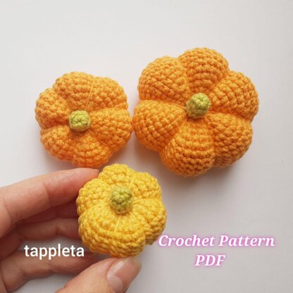 Crochet 3 sizes pumpkin pattern PDF. Amigurumi pumpkin Halloween pattern, Thanksgiving home decor, Vintage halloween decoration. !!!This listing is for a digital download crochet pattern - NOT a FINISHED ITEM!!! A very quick and easy Halloween Project! These lovely mini pumpkin will be a cute Halloween decor for your home or office, a great small gift for kids. It can be used in a baby room, living room, or fireplace, as a garland on the wall, as outside decoration in the garden. Size – Approximately 2 ¾” (7 cm.), 2” (5cm.), 1 ½” (4cm.) in diameter. This pattern is suitable for those who have crochet skills for beginners and know the magic ring, single crochet, increase, decrease. Pattern is in standard American terms. The pdf file contains a step-by-step description. You will need: - cotton or cotton blend yarn ( YarnArt Jeans) or any yarn 4 ply. - hook B (2 mm.) - polyester fiberfill - needle, scissors