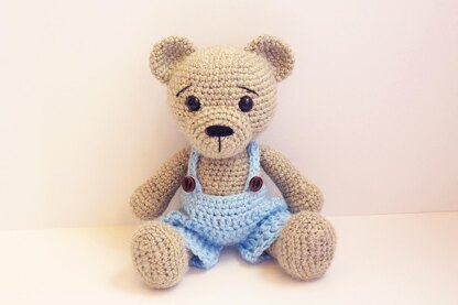 Size: The Bear is about 24cm tall (9inch). This pattern is easy to follow but requires basic crochet knowledge. Skills required: • Working in a spiral (in the round) • Chain stitch • Back loop only • Increasing • Decreasing • Slip stitch • Fasten off Supplies: • 3,0 mm crochet hook • 1 pair black 12 mm safety eyes toy • 2 1cm Buttons • Black embroidery thread • Soft stuffing • Yarn needle From this pattern you can make smaller or larger Bear by using a bulkier or finer yarn. The pattern is written in English. This file includes detailed instructions of step by step with pictures. The pattern is a PDF file Copyright : This pattern is a personal use only Don't duplicate, redistribute, resell or share this pattern or parts of this pattern. Don't translate it another languages. you may sell finished product made from this pattern with provided a credit to- Anat Tzach.