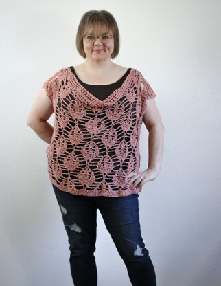 Top is worked flat in 2 pieces, front/back, then seamed.