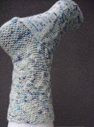 Amplitude Modulation socks feature a travelling garter rib that may be worked in a variety of sequences.