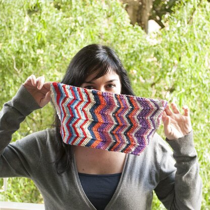 Yarn: Katia Gatsby, Capri or Bolero (sport/dk weight yarn, cotton and polyester, approx. 137 yards per 50 gram skein) in different shades. For a 3 colour cowl use 3 skeins as follows: 115 meters / 126 yards for main colour - lace (MC). 65 m / 71 y for each contrasting colour (CC1, CC2).